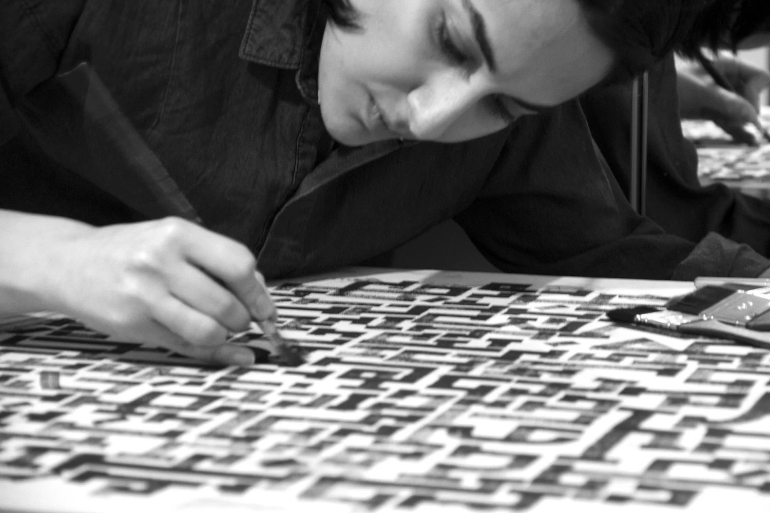 Gayane represents Armenian typography and its permutations as a metaphor for the individual in an increasingly globalised world. The artist draws parallels between the decontextualised letter and the displaced individual, where new contexts provide new opportunities for interpretation. Her process is obsessive: working within strict limitations of form and colour to create infinite variations and “errors” as she calls them. Like the sequence of letters forming our genetic code, one small alteration can translate to new forms of life.